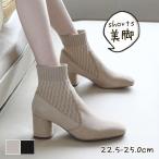 ショートブーツ ブーティー レディース 太ヒール シューズ ソックス風 ニットブーツ 履きやすい 歩きやすい 美脚 可愛い カジュアル 秋冬