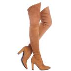 【並行輸入品】Shoe'N Tale レディース ストレッチ スエード チャンキーヒール サイハイ オーバーニーブーツ, ブラウン, 7.5 S