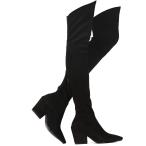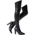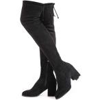 【並行輸入品】Shoe'N Tale レディース ストレッチ スエード チャンキーヒール サイハイ オーバーニーブーツ ブラック(Black Pu)