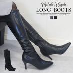 ロングブーツ レディース ニーハイブーツ ロング丈 ポインテッドトゥ ストレッチ スエード調 太ヒール 美脚 カジュアル おしゃれ 歩きやすい 黒