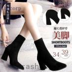 【特価】ブーティ レディース スエード調 ショートブーツ バックジップ ストレッチブーツ ハイヒール ポインテッドトゥ 靴大人かわいい 韓国風
