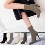 ブーティ レディース スエード調 ショートブーツ バックジップ ストレッチブーツ ハイヒール ポインテッドトゥ 靴大人かわいい 韓国風