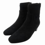 ユニティ unity ストレッチショートブーツ メタリックヒール バックジップ スエード 24.5 黒 ブラック /FF レディース