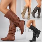 【値下げ】ブーツレディースロングブーツナウシカミドルくしゅくしゅレディースムートンブーツスエード調ローヒールインヒール3cmシューズ靴秋冬春