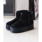 ブーツ スエード調 サイドゴア 厚底 ボア ショート ブーツ レディース