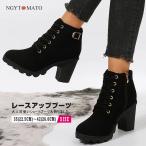 ショートブーツ スムース スエード 太ヒール ショート ブーツ 厚底 レディース ヒール レースアップ 編み上げ 秋 秋冬 歩きやすい