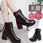 ブーツ レディース 編み上げブーツ 厚底 ショートブーツ シンプル レースアップブーツ 靴 美脚 ブーティ 太ヒール 疲れにくい レディースブーツ 大きいサイズ