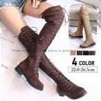 ニーハイブーツ ロングブーツ レディース 靴 レースアップ 膝上 スエード調 編み上げブーツ 履物 くつ 女性用 婦人用 ローヒール 美脚効果 防寒