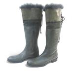 エンリーベグリン henry beguelin ロングブーツ レースアップ ファー ステッチ 39 カーキ レザー スエード レディース
