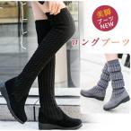 ロングブーツ レディース ニーハイブーツ 2way ストレッチ ソックスブーツ ニット 厚底 膝丈 ロング丈 美脚 カジュアル 歩きやすい 秋冬
