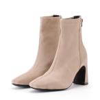 ブーツ スエード調アーモンドトゥショートブーツ レディース