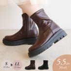 ブーツ レディース ショートブーツ ショート 厚底 太めヒール 大きいサイズ 歩きやすい スムース調 合皮 合成皮革 シンプル 大人 ストレッチ 美脚 秋冬新作 送料無料