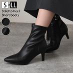 ショートブーツ レディース ブーツ 靴 シューズ ストレッチ ポインテッドトゥ ピンヒール 歩きやすい ファスナー ブラック フェイクレザー おしゃれ