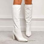 【即日発送/在庫あり】ニーハイブーツ 白 ロングブーツ ロング ブーツ ヒール 厚底 ストレッチ スムース 美脚 ハイヒール ピンヒール ローヒール 疲れない 痛くない 歩きやすい きれいめ レディース 靴 履き口 ゆったり ふくらはぎ ホワイト クリスマス 衣装 コスプレ