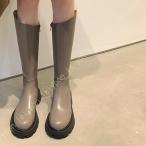 レディース ストレッチ ロングブーツ スムース レザー調 厚底ブーツ ストレッチブーツ ラウンドトゥ チャンキーヒール エンジニアブーツ サイドファスナー 5cm