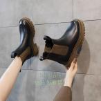 レディースショートブーツチェルシーブーツ本革秋冬靴サイドゴア厚底美脚カジュアル大きいサイズラウンドトゥ C&J スムースストレッチブーツ裏起毛