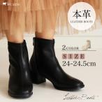 日本製 本革 ショートブーツ サイドゴア 太ヒール レディース ブーツ ヒール サイドゴアブーツ スムース 黒 ネイビー ブラウン 幅広 3E シンプル きれいめ