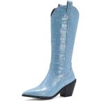 【並行輸入品】Richealnana レディース ウェスタンカウボーイ チャンキーヒール ポインテッドトゥ カウガール ニーハイブーツ ブルー 7