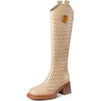 【並行輸入品】TinaCus レディース ハンドメイド 本革 バックジップアップ ブロックヒール ウェスタンスタイル サマーニーハイブーツ B アプ