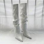 レディース ロングブーツ shoes ジョッキーブーツ スクエアトゥ ウェスタンブーツ ニーハイブーツ ハイヒール ブーツ サイドファスナー 本革 レザー
