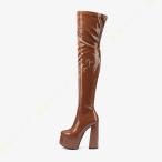 ニーハイブーツ レディース 厚底 春秋冬ブーツ ロング ストレッチブーツ 防寒 ロングブーツ 大きいサイズ ハイヒール ブーツ 太ヒール 長ブーツ 前厚 かわいい