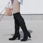 ロングブーツ レディース ニーハイブーツ ロング丈 ポインテッドトゥ ストレッチ スエード調 太ヒール 美脚 カジュアル おしゃれ 歩きやすい 黒