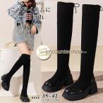 ニーハイブーツ レディース ロングブーツ ラウンドトゥ 厚底 ストレッチ ブーツ 膝上丈 トラックソールブーツ おしゃれ きれいめ スエード調 歩きやすい 美脚 黒