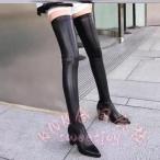ニーハイブーツ ロングブーツ レディース靴 オーバーニーブーツ ストレッチ ポインテッドトゥ ジップアップ 太ヒール 秋靴 冬用 合成皮革