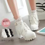 姫系 革靴 秋冬 ロリータ 靴 レディース ブーツ ショートブーツ 編み上げ レースアップ かわいい ガーリー ロリータ 厚底 おしゃれ