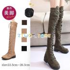 ニーハイブーツ ロングブーツ レディース 靴 レースアップ 膝上 スエード調 編み上げブーツ 履物 くつ 女性用 婦人用 ローヒール 美脚効果 防寒