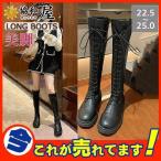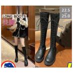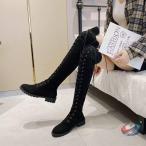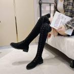ロングニーハイブーツ ロングブーツ レディース 美脚 ローヒール5cm ブーツ ストレッチ 長靴 防寒 歩きやすい ロング丈 膝丈 ニーハイブーツ レースアップ