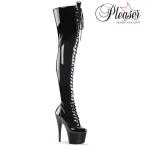 Pleaser プリーザー ニーハイブーツ サイハイブーツ レディース メンズ 18cm ヒール 厚底 黒 ブラック エナメル レースアップ ハイヒール 大きいサイズ 即納