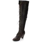 【並行輸入品】Forever レディース チャンキーヒール レースアップ オーバーニーハイライディングブーツ US サイズ: 6.5 カラー: