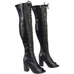 Pleaser プリーザー ニーハイブーツ レースアップ サイハイブーツ 厚底 15cm ヒール ブーツサンダル オーバーニーブーツ オープントゥ オープンヒール ブラック 黒 つや消し 大きいサイズ ステージ コスプレ 衣装 用 靴 レディース メンズ DELIGHT-3019 DEL3019/B/PU 取寄