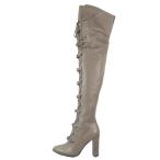 未使用 JIMMY CHOO ジミーチュウ Maloy 95 レースアップ ニーハイブーツ アーモンドトゥ レザー ロングブーツ 34.5/21.5 グレージュ レディース 古着 中古