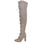 【並行輸入品】Forever レディース チャンキーヒール レースアップ ニーハイ ライディングブーツ US サイズ: 24.5 カラー: ベージュ