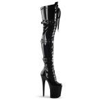 ニーハイブーツ サイハイブーツ オーバーニーブーツ 厚底 20cm ヒール Pleaser プリーザー 黒 ブラック エナメル 編み上げ 大きいサイズ レディース メンズ 取寄