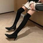 ロングブーツ レディース ニーハイブーツ ハイヒール 9cm ストレッチブーツ ロング丈 サイドファスナー 美脚 春秋冬 サイハイブーツ ピンヒール とんがりトゥ