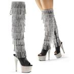 Pleaser プリーザー ニーハイブーツ サイハイブーツ 厚底 銀色 シルバー 黒 ブラック 合皮 18 cm ヒール 高め レディース メンズ ハイヒール フリンジ 取寄