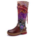 【並行輸入品】[CrazycatZ] レディース レザー ボヘミアン ニーハイブーツ ブロックヒール トールブーティ エキゾチックパターン US