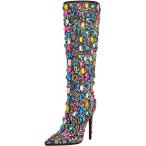 【並行輸入品】Lunhonk レディース カラフル ダイヤモンド ニーハイ ブーツ キラキラ ミッドカーフ ウエスタンブーツ ポインテッドトゥ ブロッ