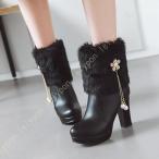 スノーブーツ 厚底 ムートンブーツ レディース ミドル丈 裏ボア ロングブーツ ハイヒール ファー付き 防寒 雪靴 ミドルブーツ 雪対応防寒 疲れにくい