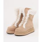 ブーツ ファー付き レースアップ 厚底 ミドル ブーツ レディース