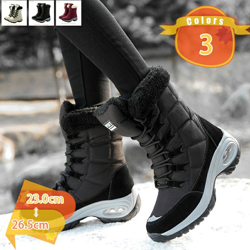 1000円OFFクーポン ブーツ レディース スノーブーツ スノーシューズ レースアップシューズ 無地 保温 アウトドアシューズ 防寒靴 雪靴 綿靴 裏起毛 防滑 暖かく保つ 滑り止め 軽量 低反発 ファー付き 雪遊び スキー