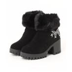 ブーツ 刺繍付き スエード調 ファー ショート ブーツ レディース