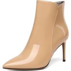 【並行輸入品】Sammitop レディース 8cm スティレットヒール アンクルブーツ ジップアップ 冬用ショートブーツ ファー付き ベージュ 1