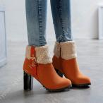 ショートブーツ ファー付きハイヒール ショートブーツ レディース サイドジッパー 厚底 ブーツプラットフォーム バックル 安定感ボア裏起毛 防寒滑り止め 雪靴