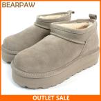 ベアパウ 厚底 ショートブーツ ムートン ボア BEARPAW - RETRO SUPER SHORTY MUSHROOM グレイッシュ レディース 撥水 防汚 本革 【新品アウトレット】