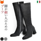 イタリア製 スエード ロングブーツ レディース 細身 内ボア ムートン ブーツ 暖かい 黒 太ヒール サイドジップ ブラック グレージュ 大きいサイズ 25cm