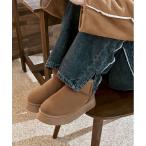 ブーツ 5cm厚底 ムートン風 内ボア フラット ショート ブーツ レディース